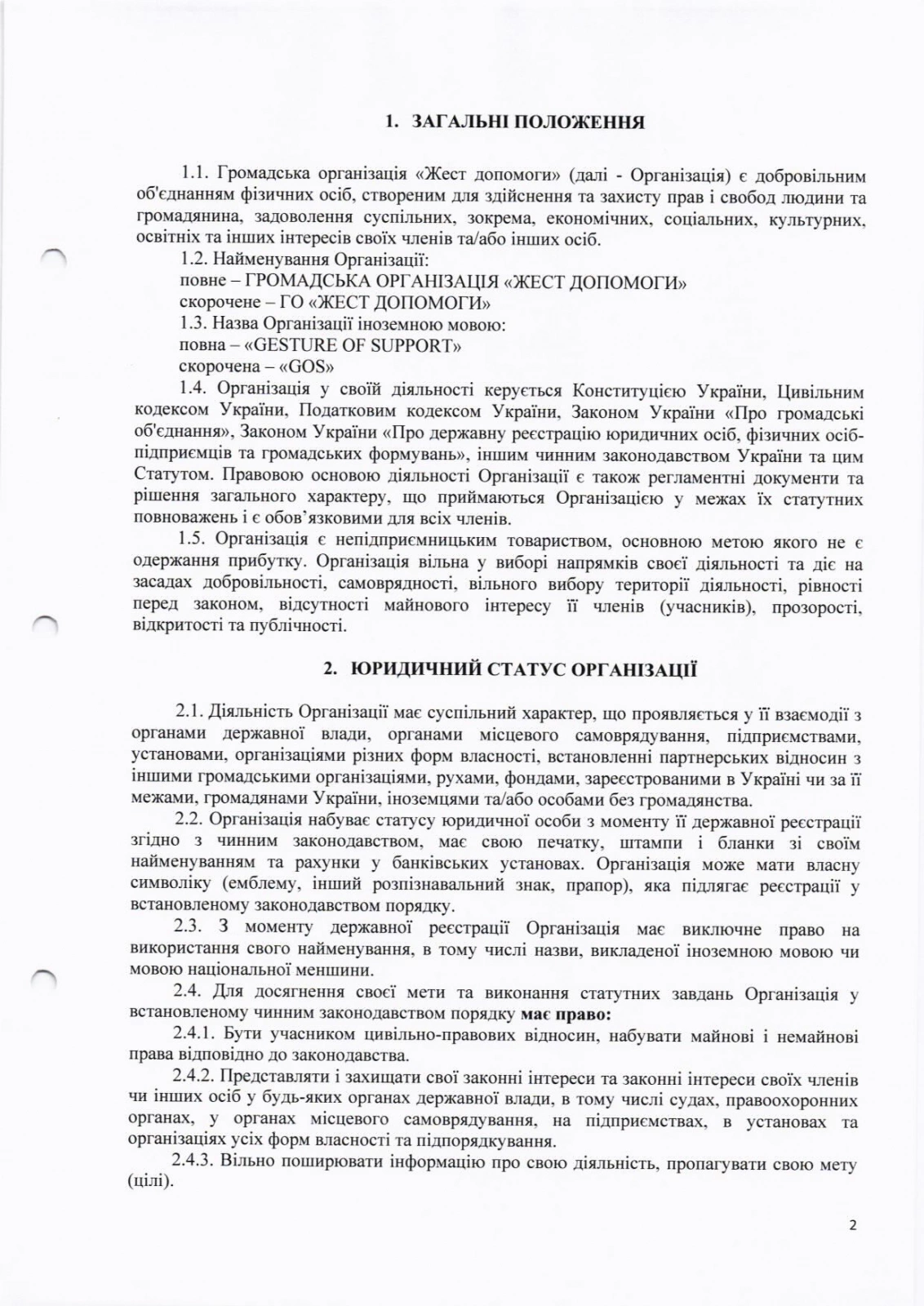 Статут ГО "Жест допомоги"