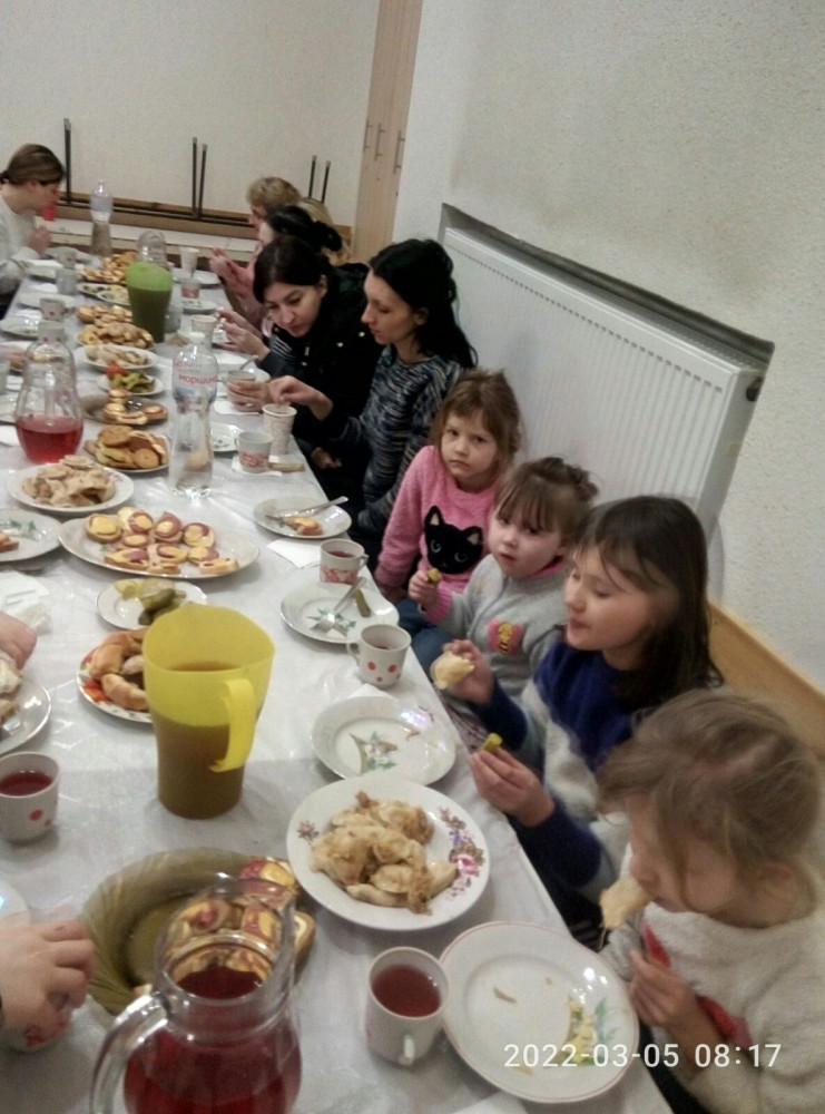 Громадська організація "Жест допомоги" готує сімї, що втікають від війни. Все більше і більше сімей втікає від війни на західну Україну. Наші волонтери готують смачні сніданки, обіди та вечері для дітей та дорослих в місті Ковель, що на Волині.